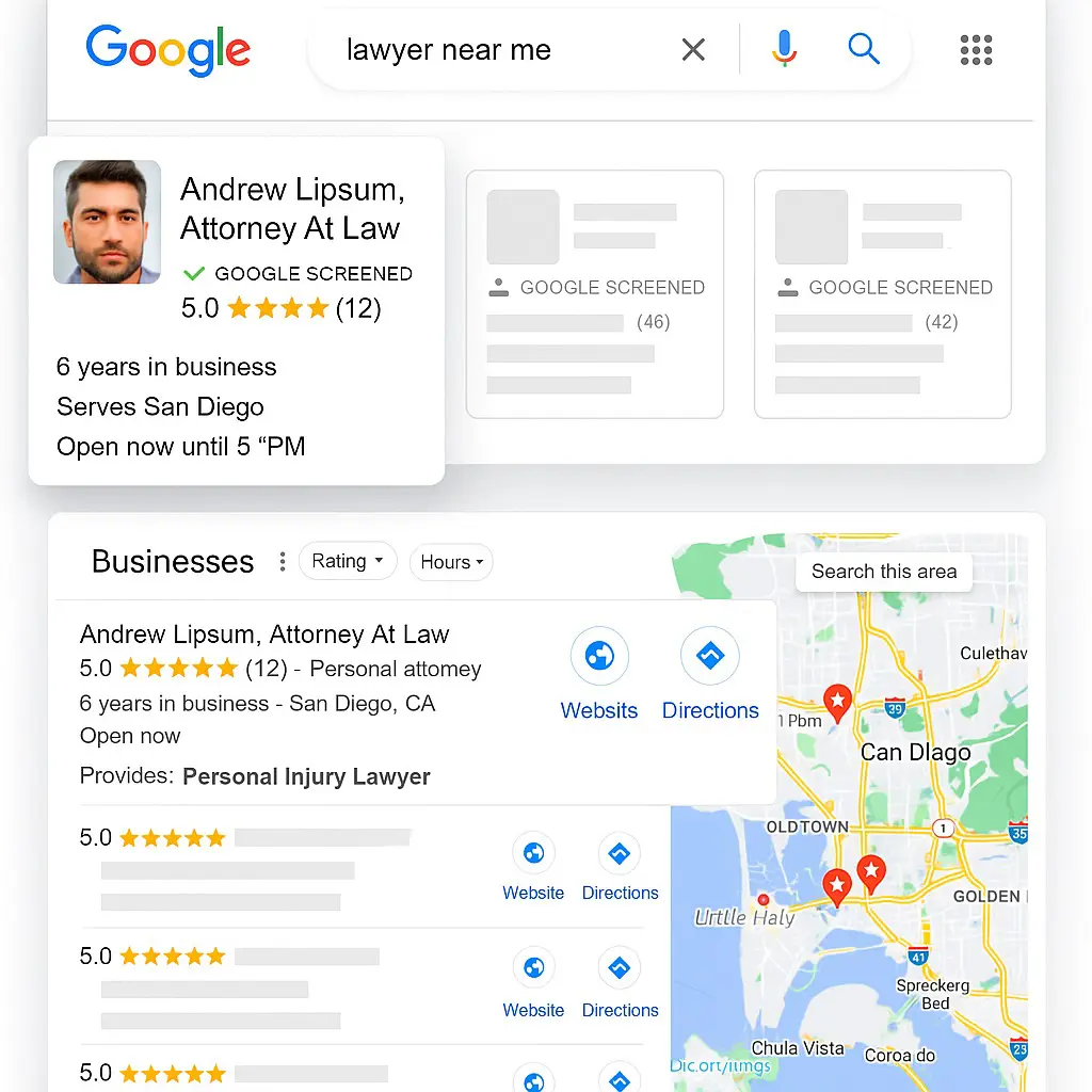 Appear instantly when someone searches “lawyer near me.”